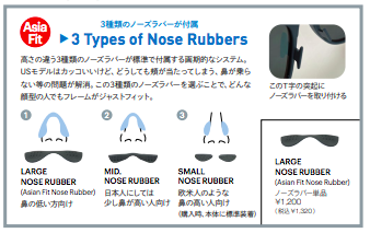 鼻が低いとされるアジア人のために、ノーズラバーの高さを換えることができるシステムです。